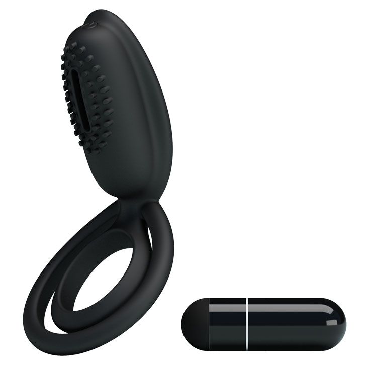 Эрекционное кольцо с вибрацией – любимая игрушка множества пар, так как ощущения, которые она дарит, обеспечивают сильный оргазм и у мужчины, и у женщины. Данное колечко представляет собой симбиоз классического кольца, подхвата для мошонки и большой клиторальной щеточки с вибрацией. Вибропуля съемная. Батарейки в комплекте. Внутренний диаметр кольца - 2 см.