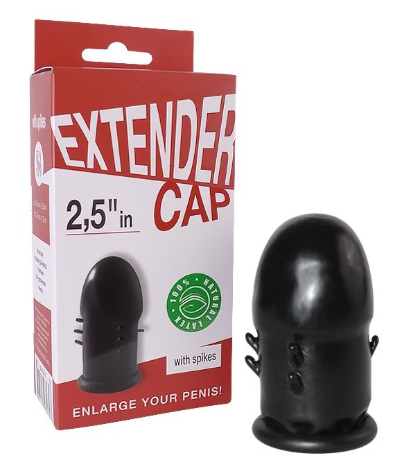 Чёрный латексный удлинитель пениса 2.5 in с шипиками. Прирост длины - 6,3 см.