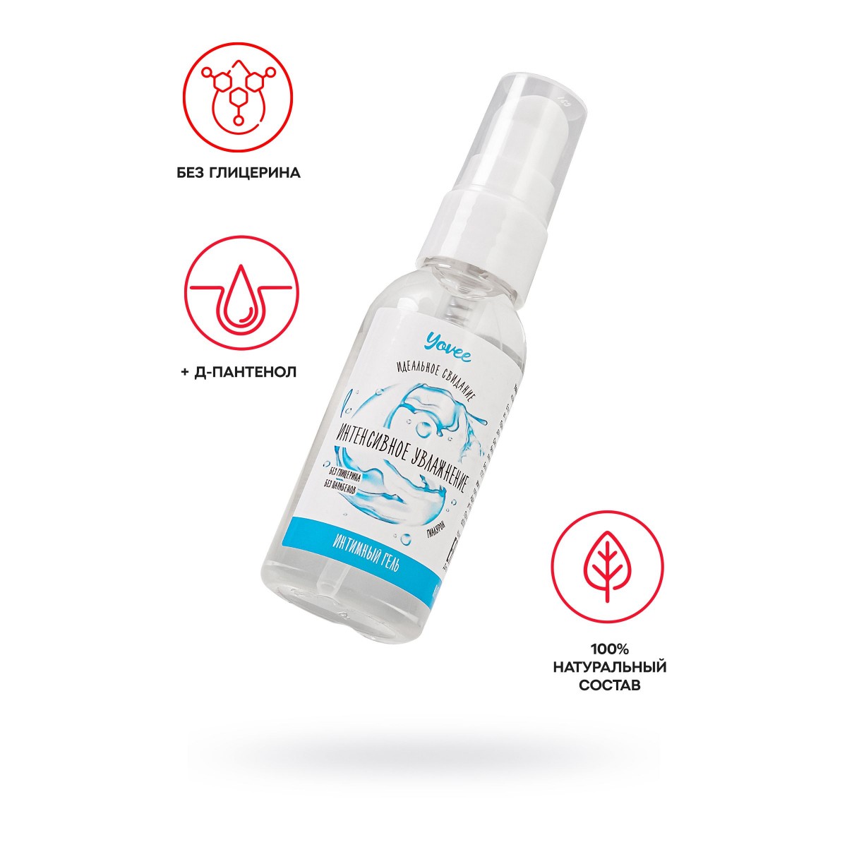 Интимный гель Yovee «Интенсивное увлажнение» восполняет уровень естественной смазки, создает мягкое и комфортное скольжение без ощущения липкости. Благодаря натуральному составу смягчает и увлажняет, улучшает эластичность кожи и слизистой, снимает раздражение, устраняет сухость влагалища. Легко смывается водой, не оставляет следов на одежде и постельном белье. Подходит как для вагинального, так и для орального секса. Совместим со всеми видами презервативов и игрушек для взрослых. Простой и безопасный состав: вода гидроксиэтилцеллюлоза - стабилизатор эмульсий, регулятор вязкости Д-пантенол и гиалуроновая кислота препятствуют потере влаги, защищают слизистые, запускают процесс регенерации тканей сорбат калия и бензоат натрия – безопасные пищевые консерванты, разрешенные в натуральной и органической косметике лимонная кислота помогает поддерживать оптимальный уровень рН, является естественным консервантом.